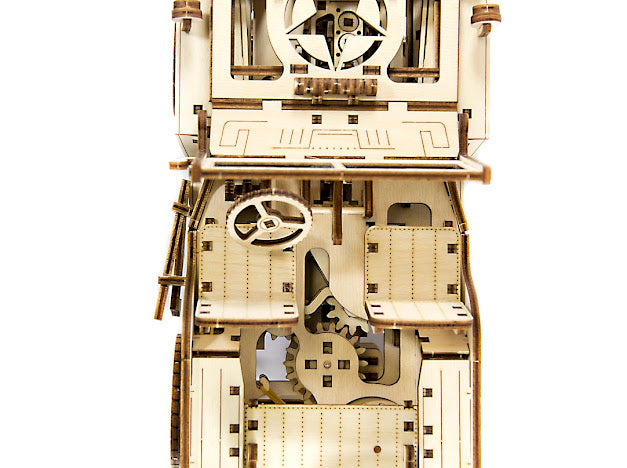 Wind de krachtige rubberbandmotor op en activeer de permanente vierwielaandrijving. Deze 4x4 stopt voor niets en kan tot wel 2 meter afleggen over ruig terrein, aangedreven door een complex systeem van tandwielen en assen.